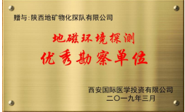 ? ? 日前,物化探隊順利完成西安國際醫學投資有限公司5個地磁場探測項目,并被該公司贈與“優秀勘察單位”。