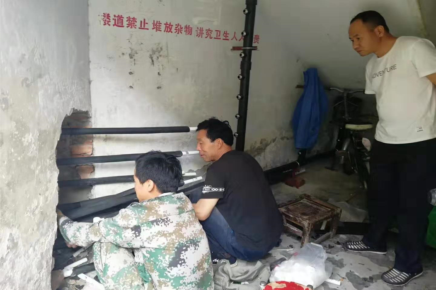 ? ? 物化探隊周至基地有職工家屬213戶,水管線路在維修改造中,一是由于院內主管網年代已久、管路老化,且分布復雜,必須重新開挖鋪設新網。二是與周邊村民的歷史遺留問題有待解決。三是離退休職工及家屬阻力較大,因維修改造須穿墻破壁,破壞了住戶房屋原有的裝修格局。致使水網改造工作困難重重。
