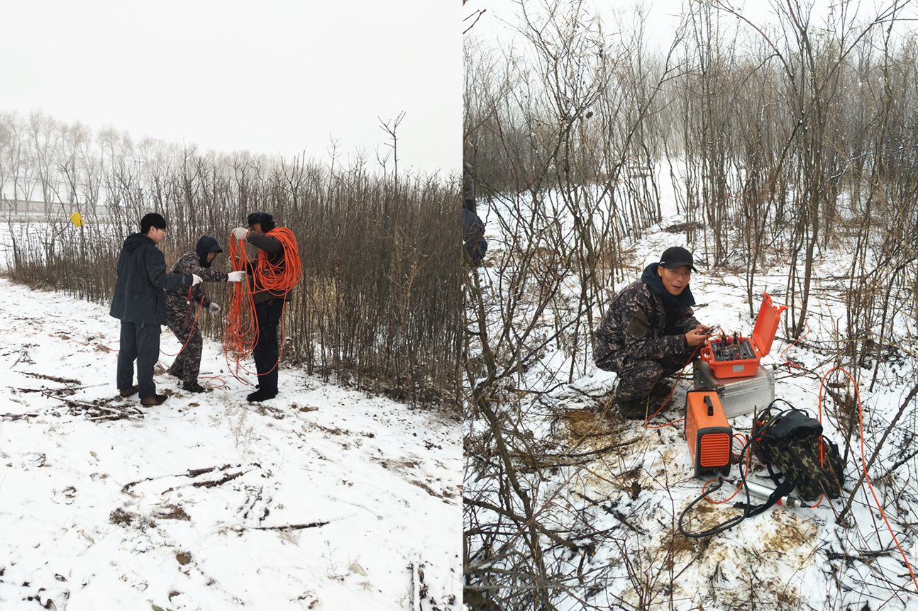 ? ? 為查明地下水分布情況,環境工程公司在隧道設計段地表開展高密度電法探測,查明隧道設計段100m以淺地下含水分布情況。項目組人員2020年1月3日抵達工區后,隨即開展野外勘察工作。時間緊、任務重,為盡快獲取探測數據,在確保安全前提下,項目組克服了降雪、嚴寒天氣條件等不利因素,提高效率、縮短工期,高質量完成了工作任務,獲取了優質的探測數據,項目實施效率和初步成果獲得了甲方高度評價。