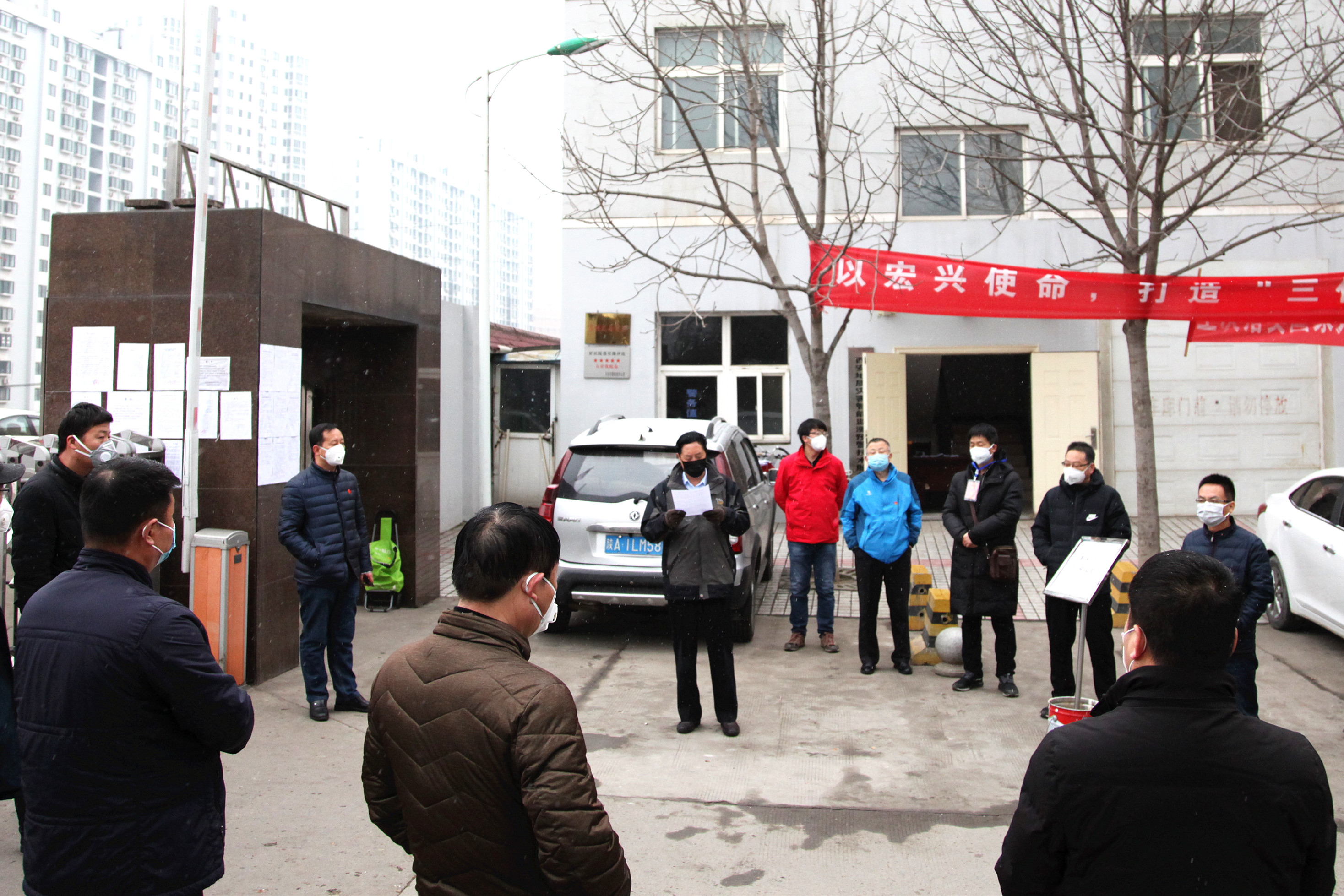 ??? 2月6日上午,黨委書記、執行董事、總經理王新坪在單位小區門口值班現場,冒著小雪主持召開了中層以上干部緊急會議,對前期疫情防控工作作了簡要總結,對下一步工作做了再部署、再落實。