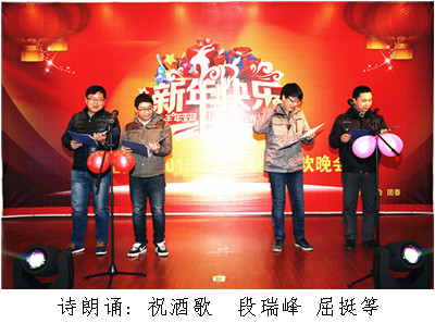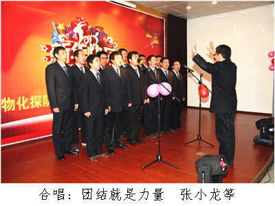 ? ? 伴隨著炫動(dòng)的燈光,激情的音樂,歌曲《歡聚一堂》拉開了晚會(huì)的序幕,也拉開了歡樂和友誼的序曲。大家在這里歡聚一堂,聚一份祝福,聚一份吉祥,聚一份興旺,滿懷激情、滿懷喜悅共同祝愿物化探事業(yè)蒸蒸日上。一曲抒情的《朋友》唱出了互相關(guān)心、互相愛護(hù)、團(tuán)結(jié)友愛,大家用心感受這份真情,用愛融化冰雪,用真誠點(diǎn)亮希望。雄壯有力的男聲大合唱《團(tuán)結(jié)就是力量》,表達(dá)了物化探人凝聚力量、團(tuán)結(jié)奮進(jìn)、求真務(wù)實(shí)的精神風(fēng)貌。具有濃郁民族特色的舞蹈《格?;ㄩ_》將晚會(huì)推向高潮。由職工創(chuàng)作的小品《地礦達(dá)人秀》,表現(xiàn)了物化探人熱愛生活,并以其風(fēng)趣幽默,新穎獨(dú)特的設(shè)計(jì)引起了觀眾的極大興趣,博得了職工的陣陣掌聲。由職工創(chuàng)作的配樂詩朗誦《物探者之歌》,謳歌了物探人“三光榮”和“四特別”精神,盡管被山風(fēng)吹裂了臉頰,驕陽炙燙了皮膚、嚴(yán)寒凍傷了手腳,無論如何也熄滅不了他們?yōu)榱说刭|(zhì)事業(yè)迎難而上、砥礪奮進(jìn)、無私奉獻(xiàn)的滿腔熱血。充滿青春活力的舞蹈《小蘋果》,將演出再次推向高潮。晚會(huì)在全體演職人員《難忘今宵》的大合唱歌聲中落下帷幕。