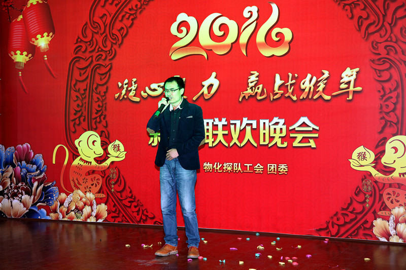 ??? 伴隨著炫動的燈光,激情的音樂,晚會在一支紅紅火火的“開門紅”舞蹈中拉開序幕,來自機關各科室的近十名青年職工,用熱辣動感的舞步瞬間沸騰了晚會現場,昭示著物化探隊天天開門紅,歡快的旋律、熱情的吶喊,讓晚會變成了一個“歡樂的海洋”,接下來的詩朗誦“新春頌”,表演熱情洋溢,共同祝愿物化探事業永遠與春天同行!鏗鏘有力的合唱《勘探隊員之歌》,唱出了物化探隊職工為了地質事業砥礪奮進、無私的奉獻的崇高精神。女聲獨唱《謝謝你讓我這么愛你》溫情浪漫,別出心裁的《相信自己》亮出青春、堅定信心,相信2016我們一定能贏,把晚會推向高潮。白林科為晚會助興演唱了《男人哭吧哭吧不是罪》,激情的演唱博得了在場觀眾的陣陣掌聲。《父親的草原母親的河》表達了物化探人連續8年奮戰在內蒙古巴丹吉林沙漠的深厚感情,他們真正是地質一線的《真心英雄》,《我的好兄弟》唱出了物化探隊青年人的地質情、戰友情,《北京頌歌》象征著團結、凝聚著力量。《眾人劃槳開大船》表現了物化探人齊心合力、堅定信心、開拓創新,贏戰2016 ,走向希望,并將演出再次推向高潮,更是點燃了現場干部職工的熱情,激起了一浪高過一浪的喝彩與歡呼,也給廣大干部職工留下了一段難忘的歡樂時光。晚會結束后,白林科、王新坪、賀志銀為獲獎節目進行了現場頒獎。