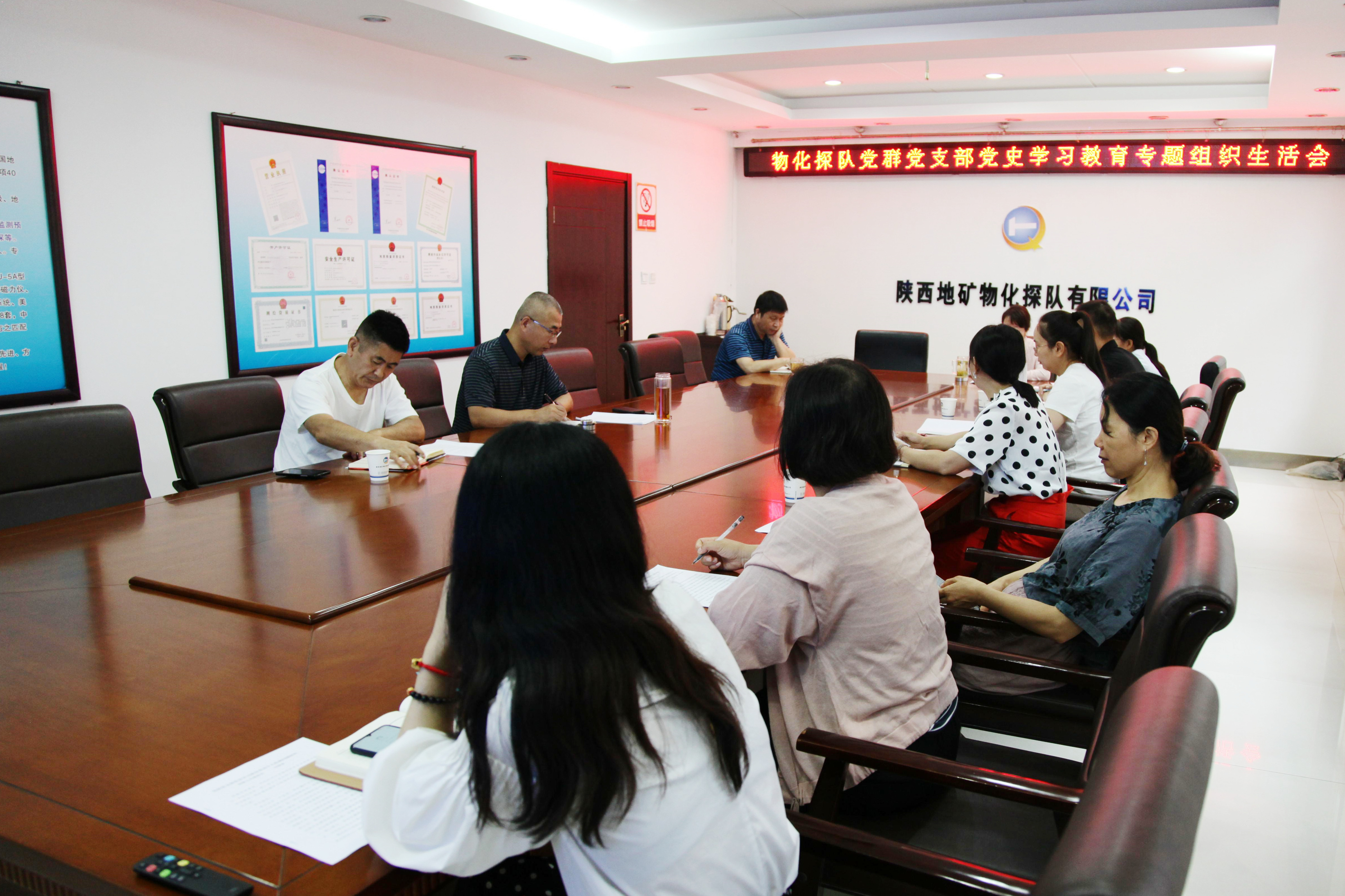 ??? 8月13日,物化探隊黨委書記、執(zhí)行董事、總經(jīng)理李新勝參加黨群黨支部黨史學習教育專題組織生活會并作點評講話。黨群黨支部黨員參加會議。