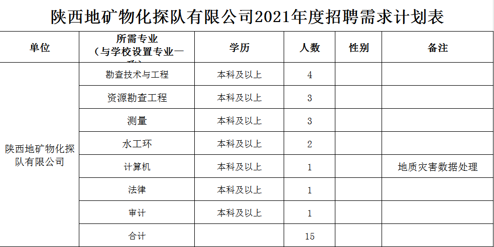 陜西地礦物化探隊(duì)有限公司2021年招聘計(jì)劃